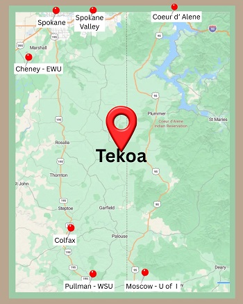 Whether you are looking for food, services, unique places to shop, or a special place to live, Tekoa is a wonderful discovery. Tucked between the border of mountainous Northern Idaho and the rolling hills of the Palouse, Tekoa is beautiful. We have well-maintained parks, a growing shopping district and will soon be connected to the Palouse to the Cascades State Park Trail. A twelve minute drive will take you to the trail head of the Trail of the Coeur d’Alenes. Tekoa is home to the Historic Empire Theater and short drives will easily take you to Spokane, Lake Coeur d’ Alene, McCroskey State Park (Idaho), and to the WSU and University of Idaho campuses. Known for our strong bonds and a rich farming history, Tekoa is a treasure. You just might be tempted to make us your new home!